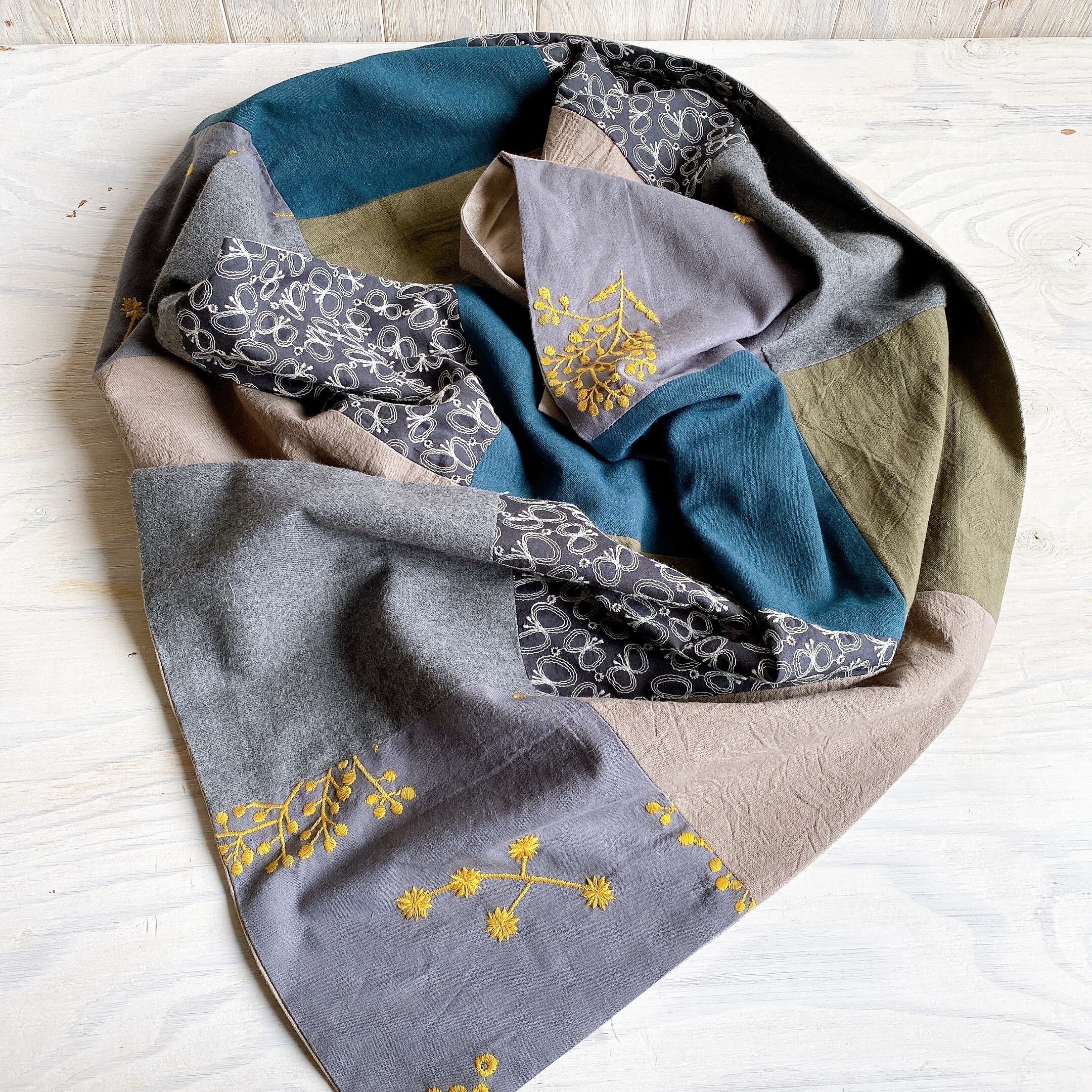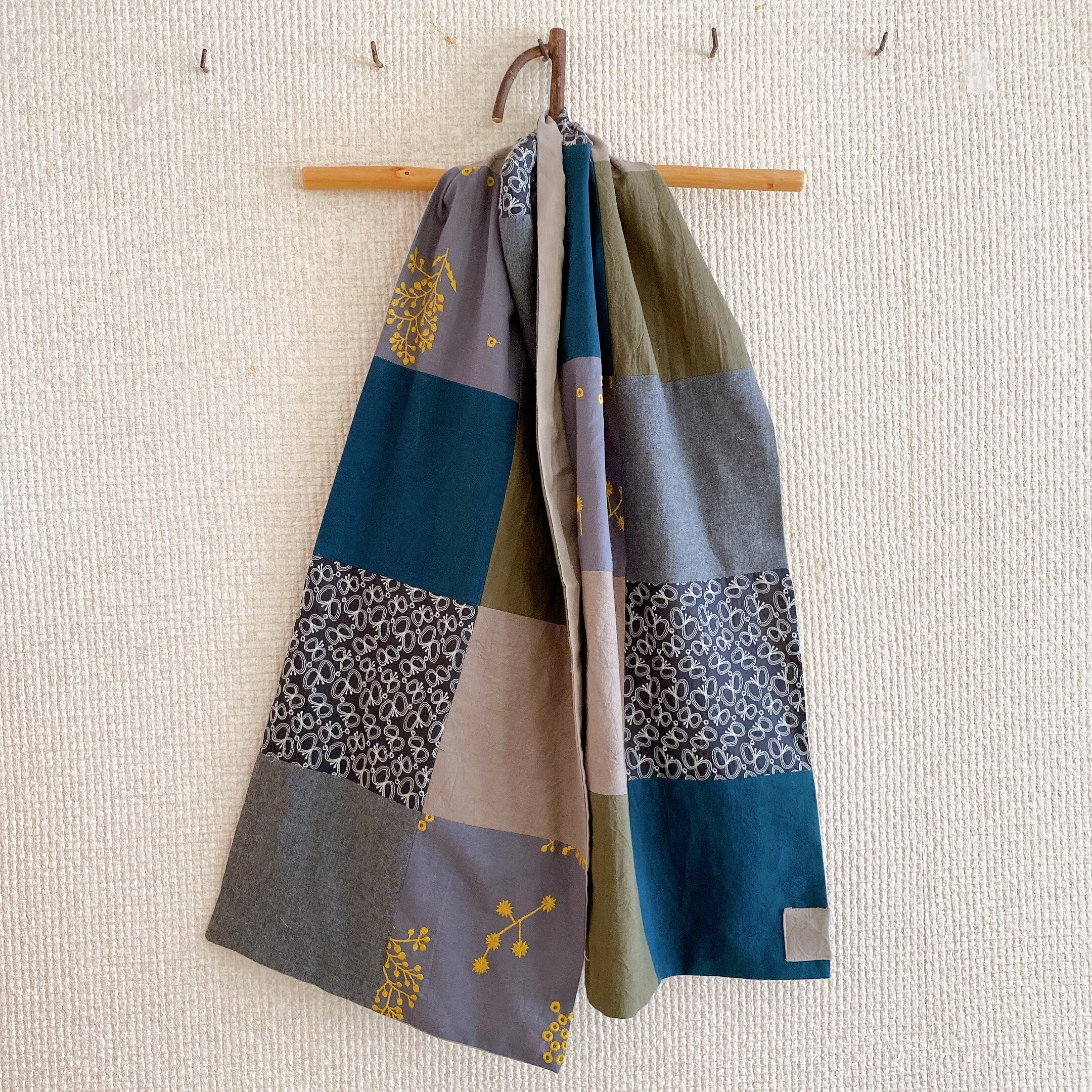 パッチワークの大判ストール(カーキmix)