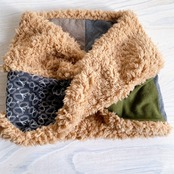 ねじれのmixスヌード(ちょうちょ刺繍とグレー刺繍)