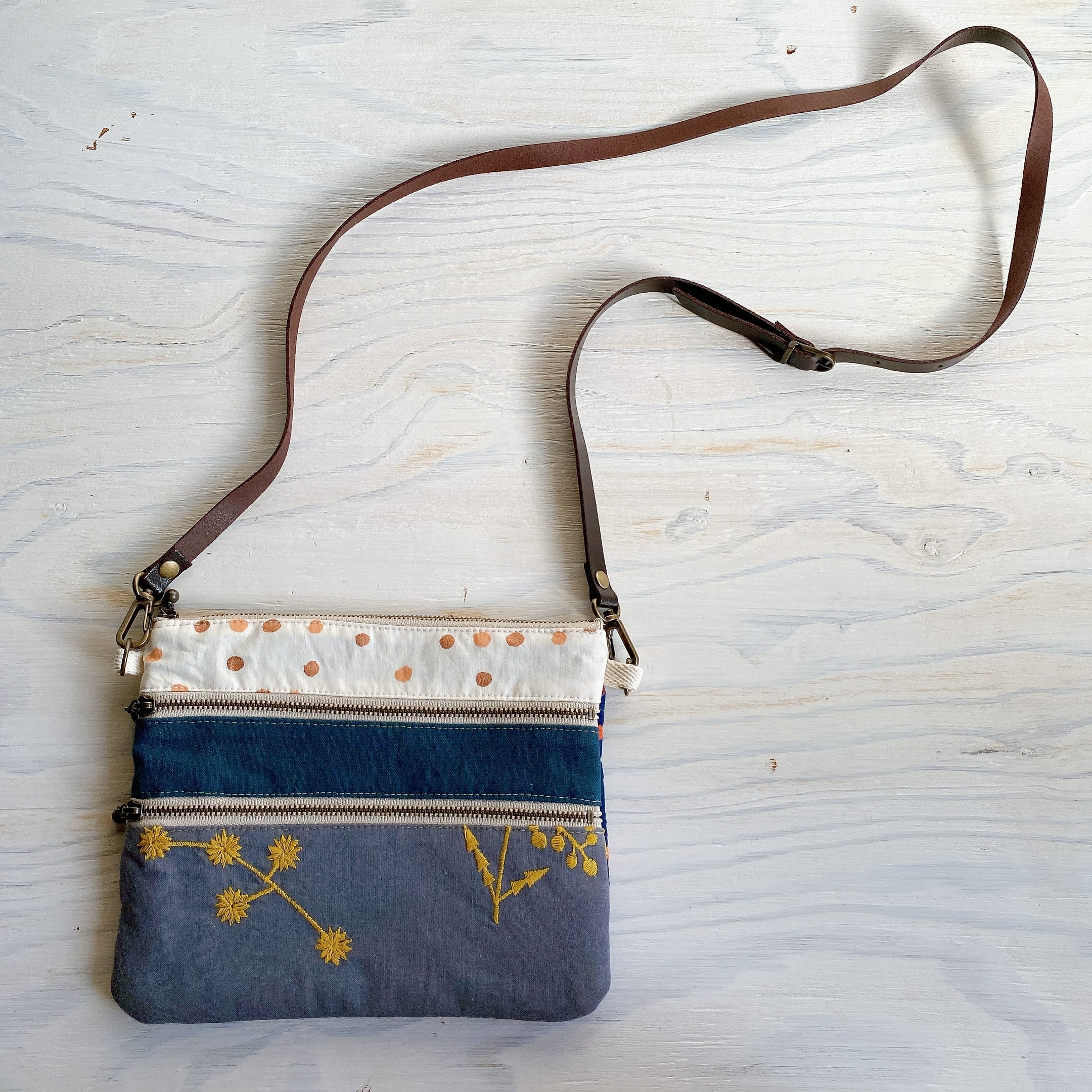 3ファスナーフラットポーチ・サコッシュにもなります(刺繍)