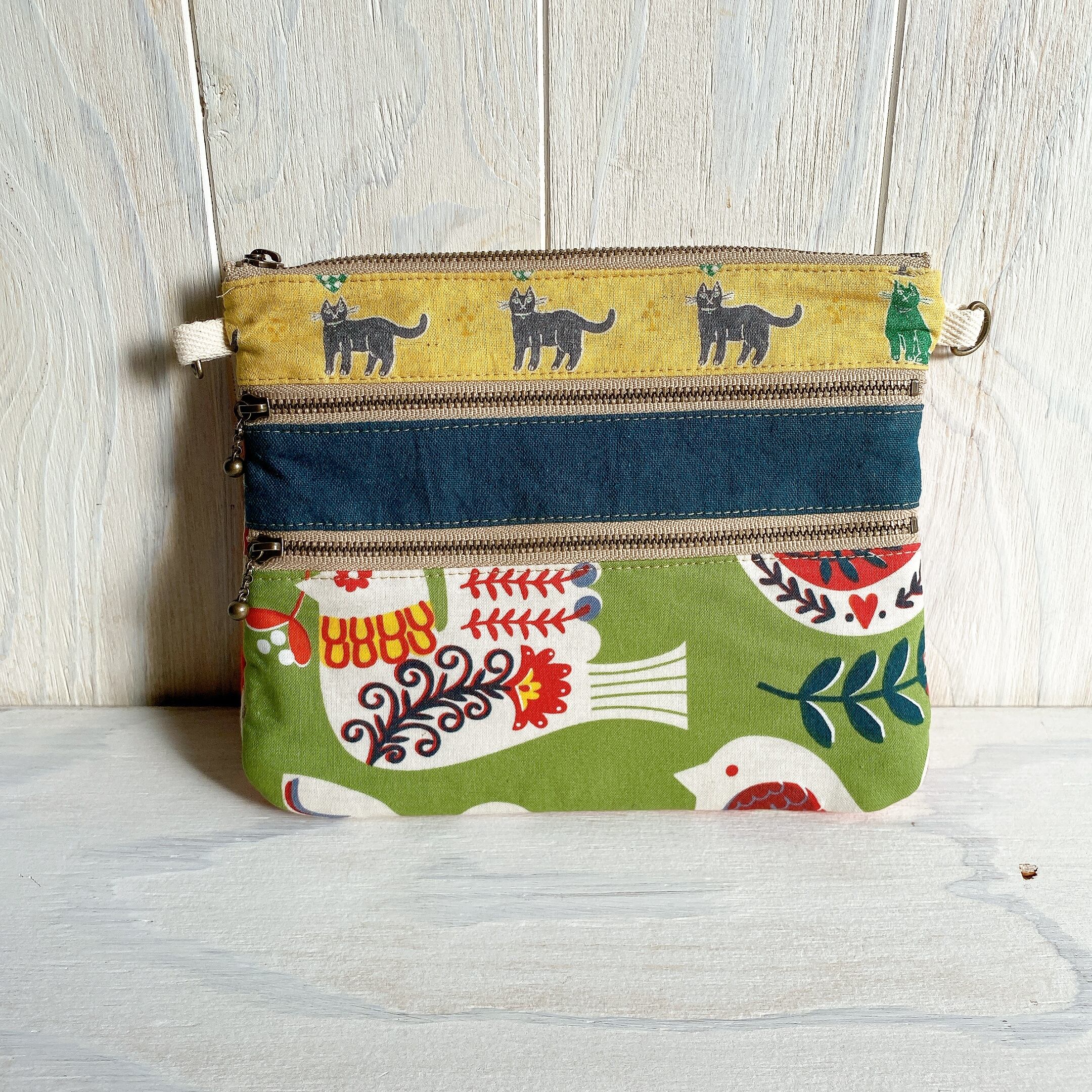 3ファスナーフラットポーチ・サコッシュにもなります(とり)
