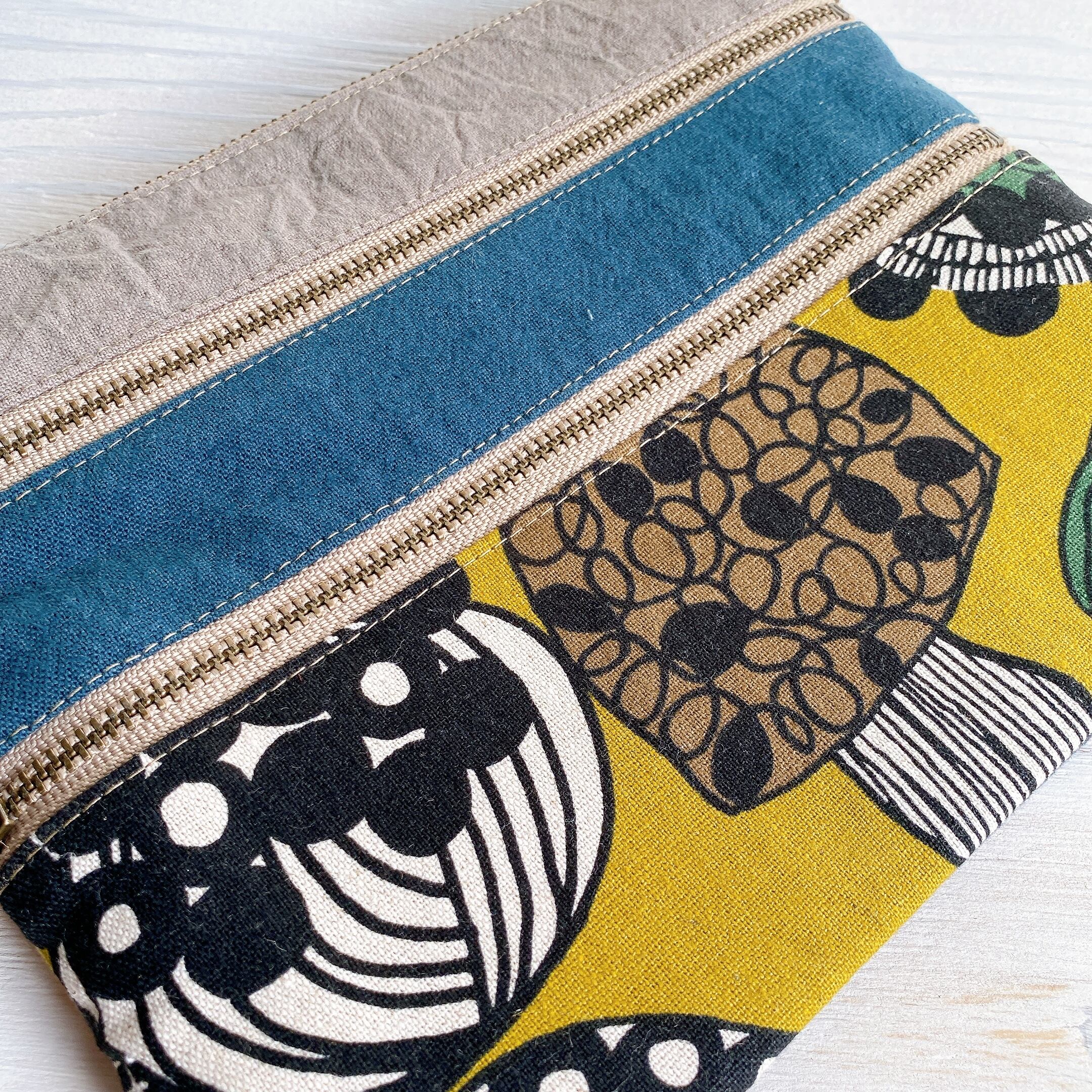 3ファスナーフラットポーチ・サコッシュにもなります(きのこ)