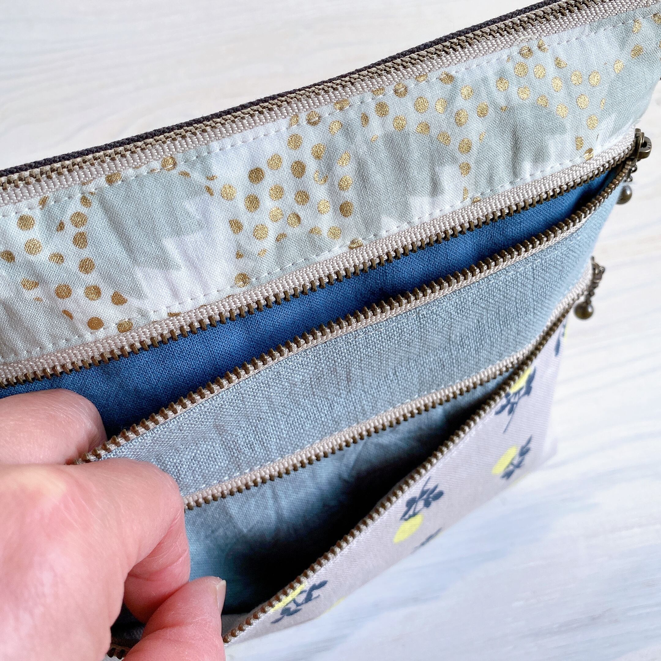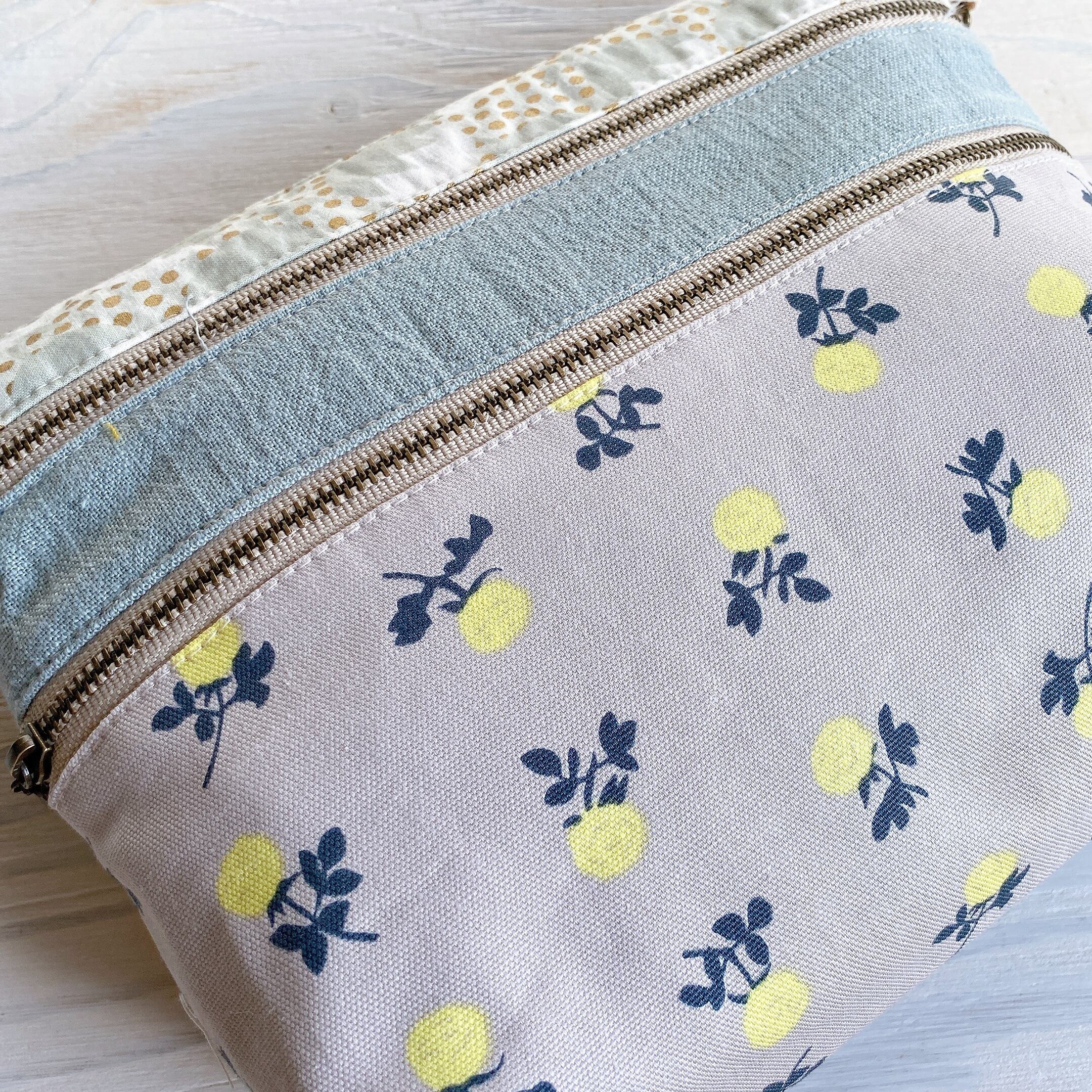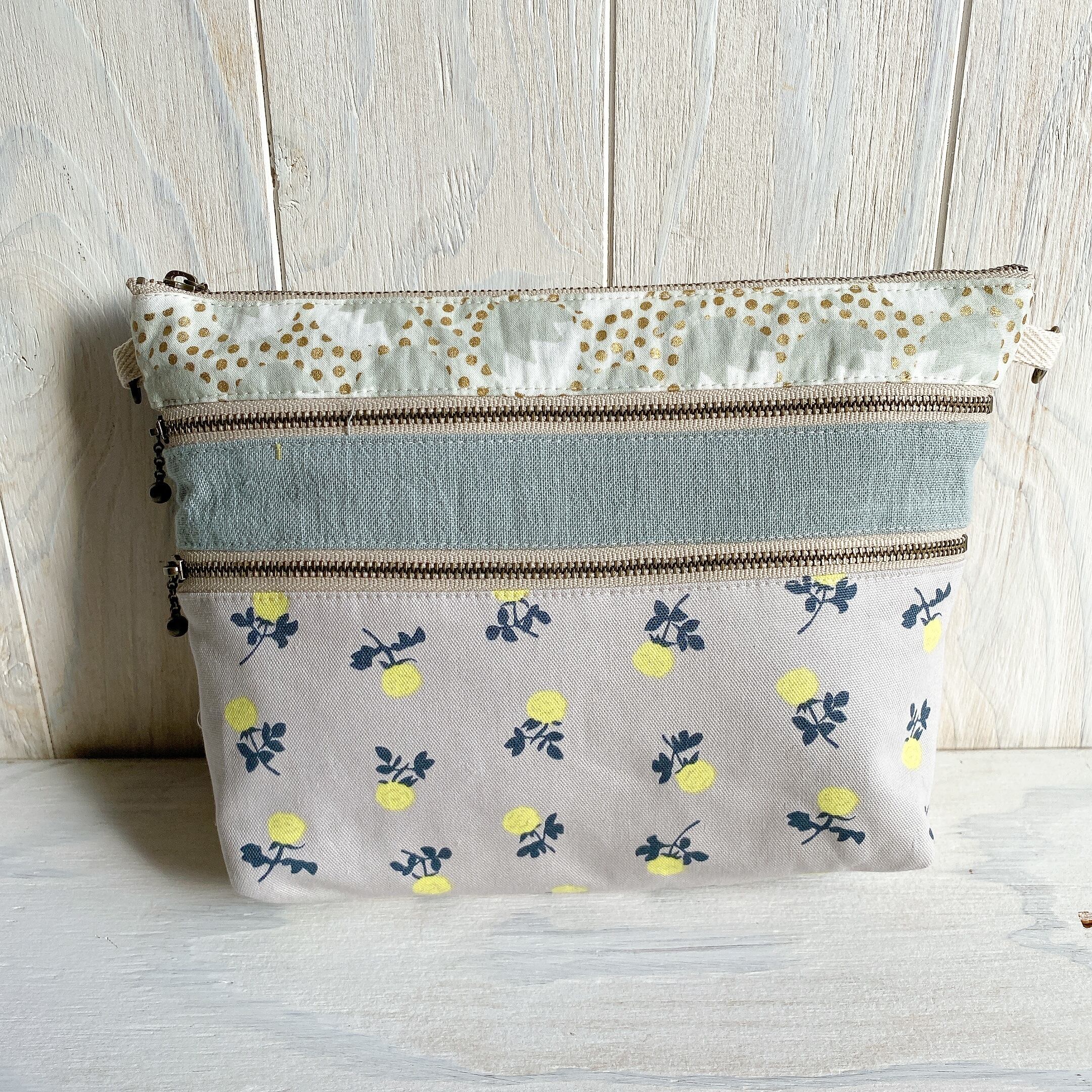 マチ付き3ファスナーポーチ・ポシェットにもなります(黄色い花)