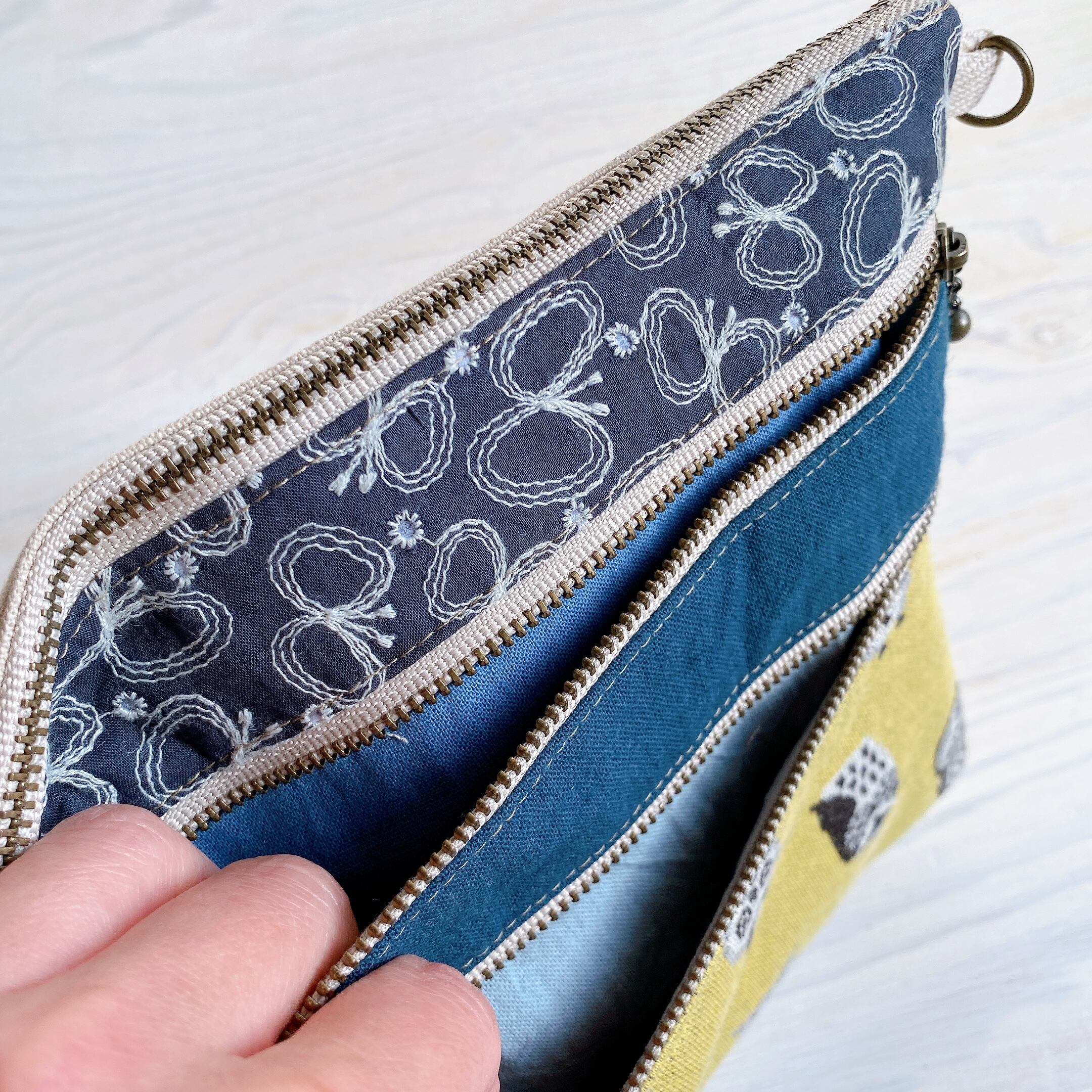 マチ付き3ファスナーポーチ・ポシェットにもなります(ふくろう)