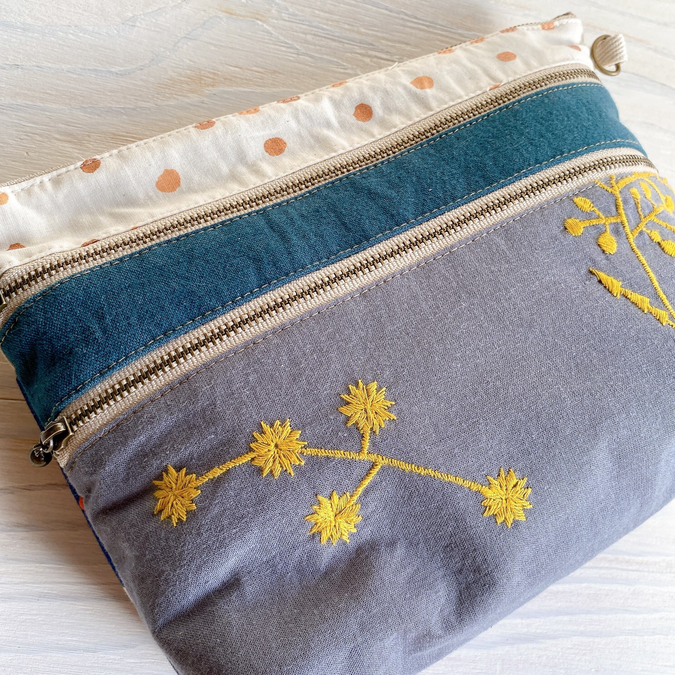 マチ付き3ファスナーポーチ・ポシェットにもなります(刺繍)