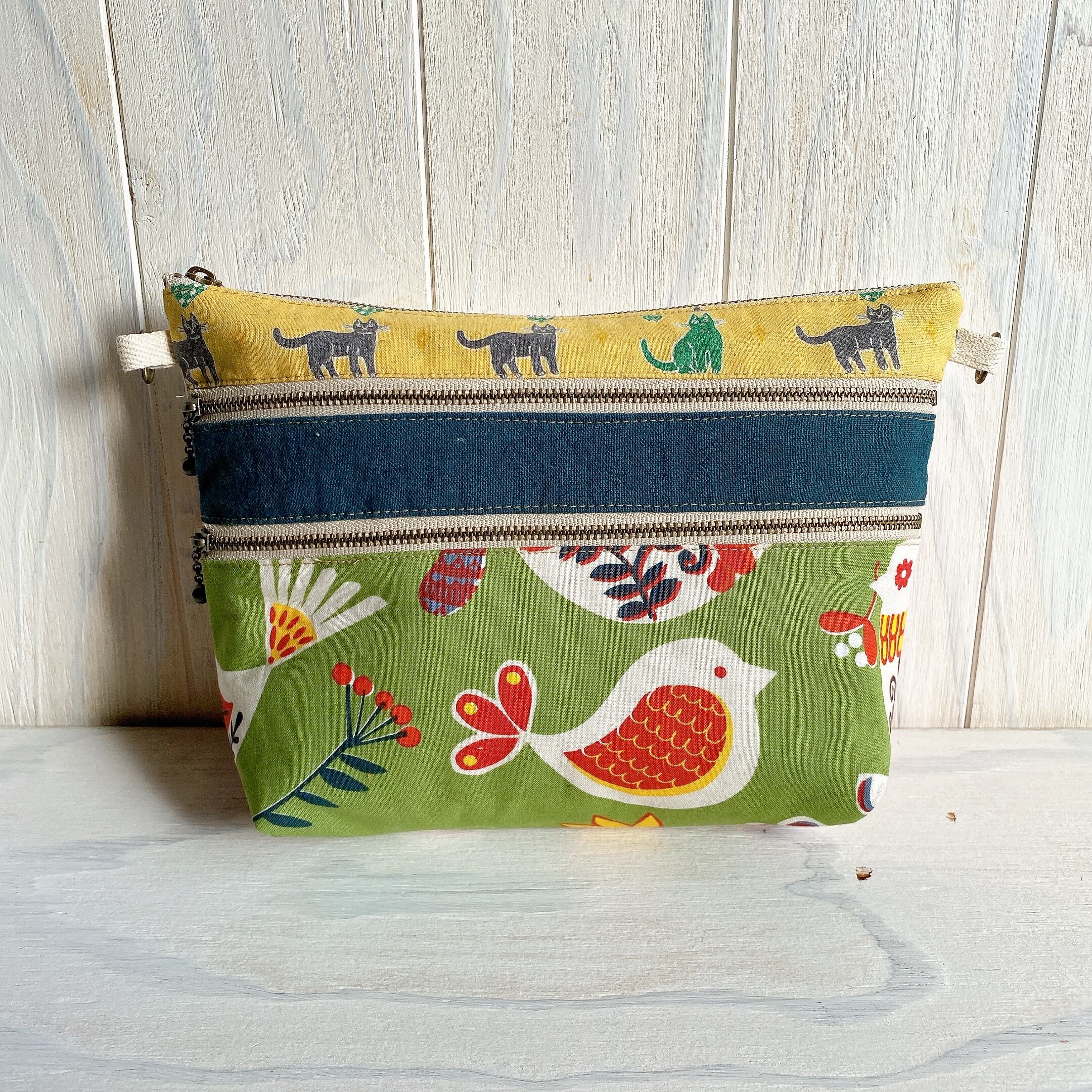 マチ付き3ファスナーポーチ・ポシェットにもなります(とり)