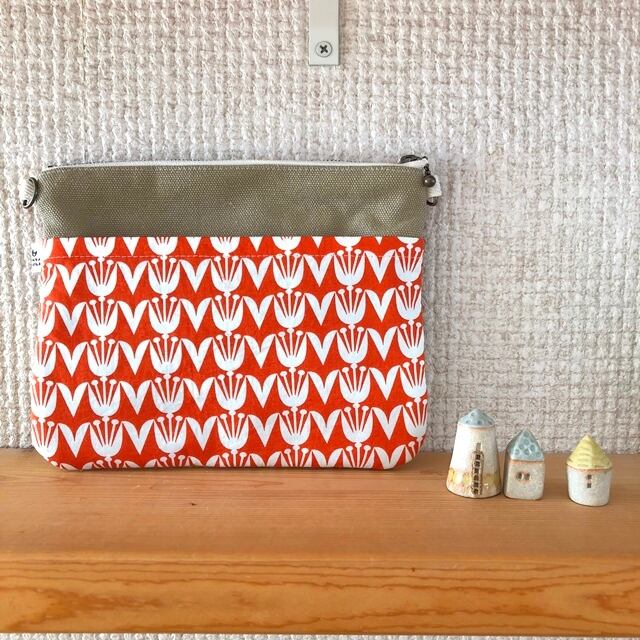 ポシェットにもなります*3ファスナーポーチ(アカリンゴ)