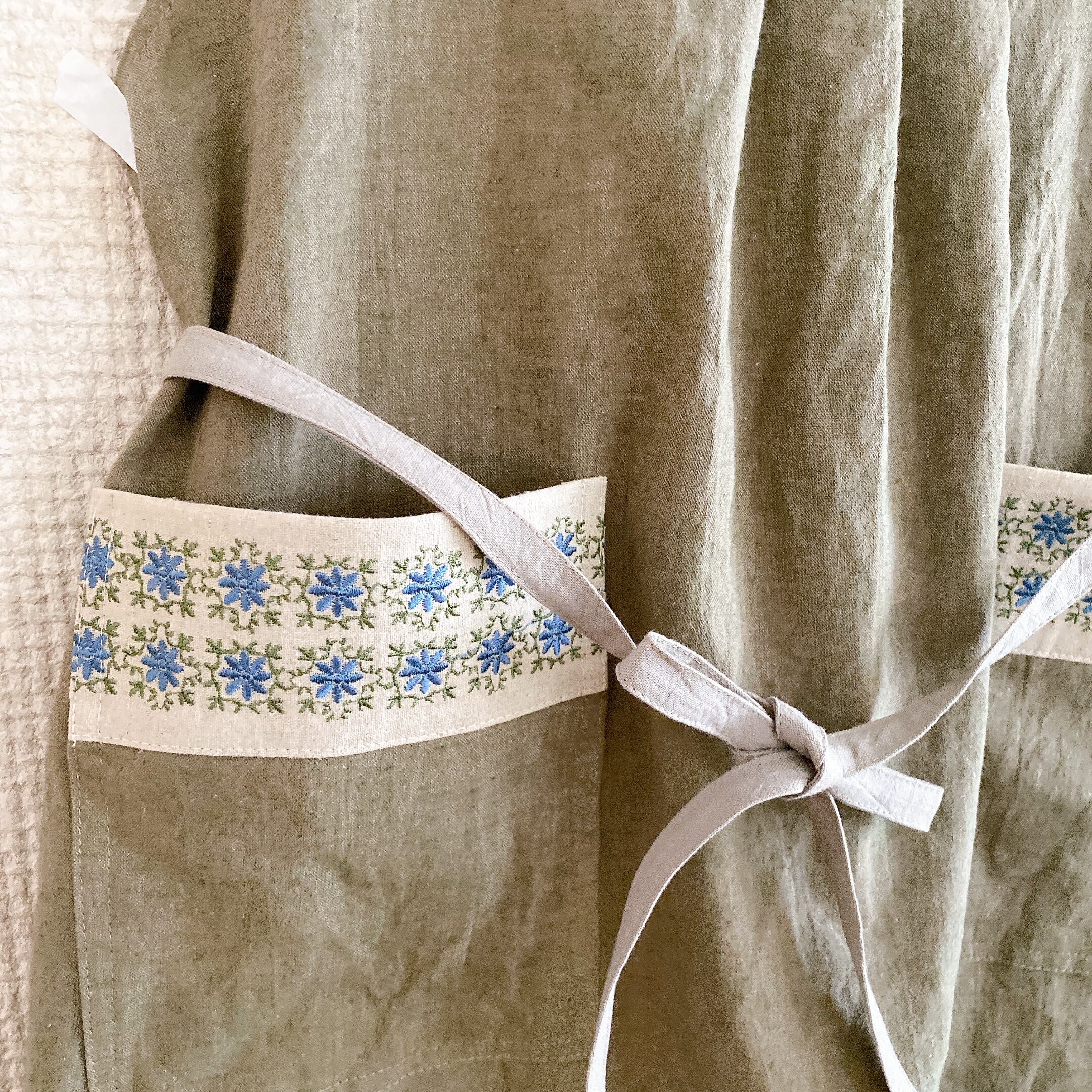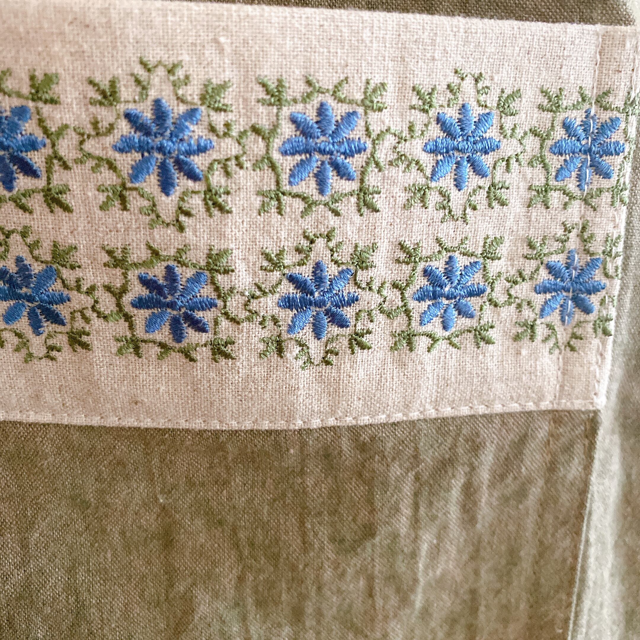 ナチュラルで繊細な刺繍をポケット口に使いました