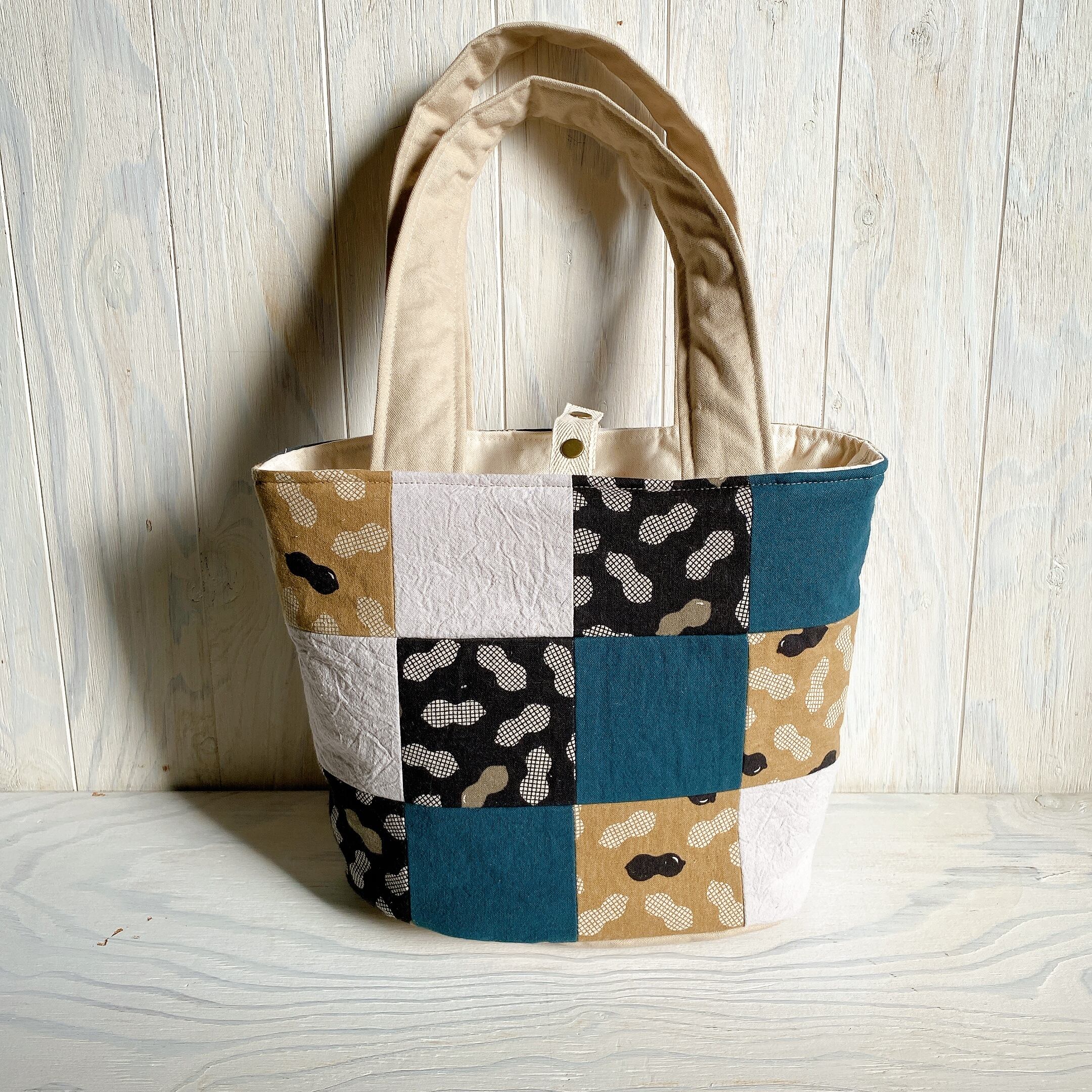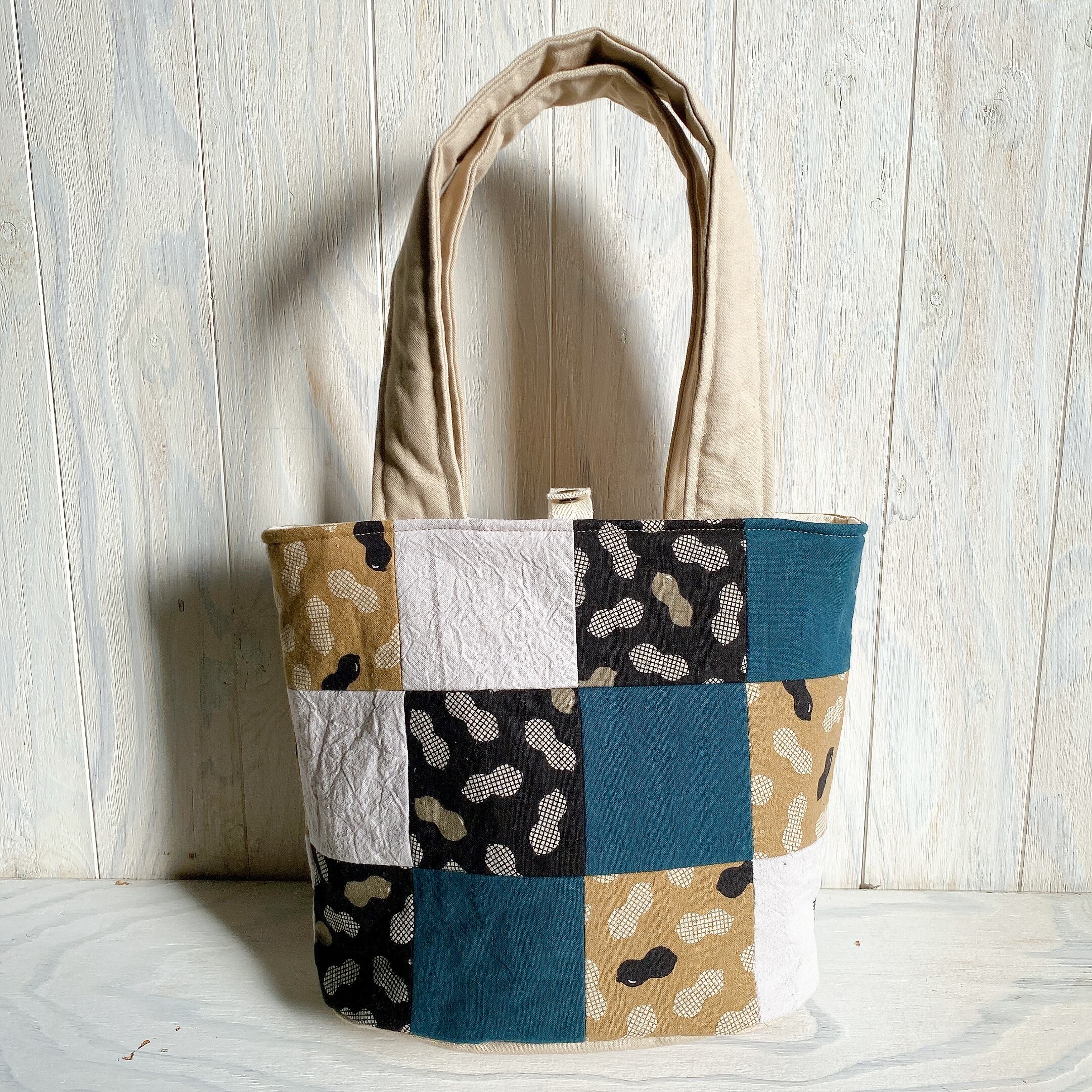 パッチワークのふんわりバケツトート(ピーナッツ)