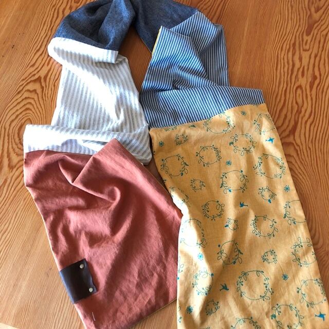 裏地には、肌触りの良いからし色のダブルガーゼを使っています。