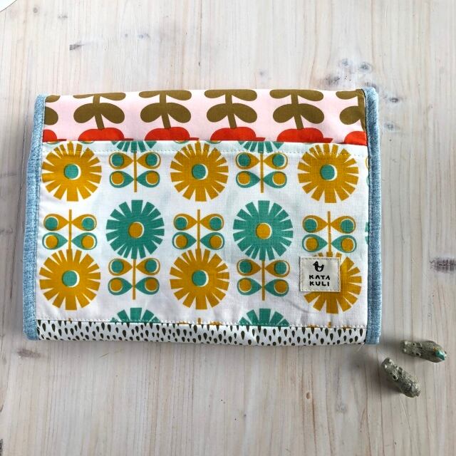 北欧風の布を使ってふんわりワタ入りのマルチケースを作りました。