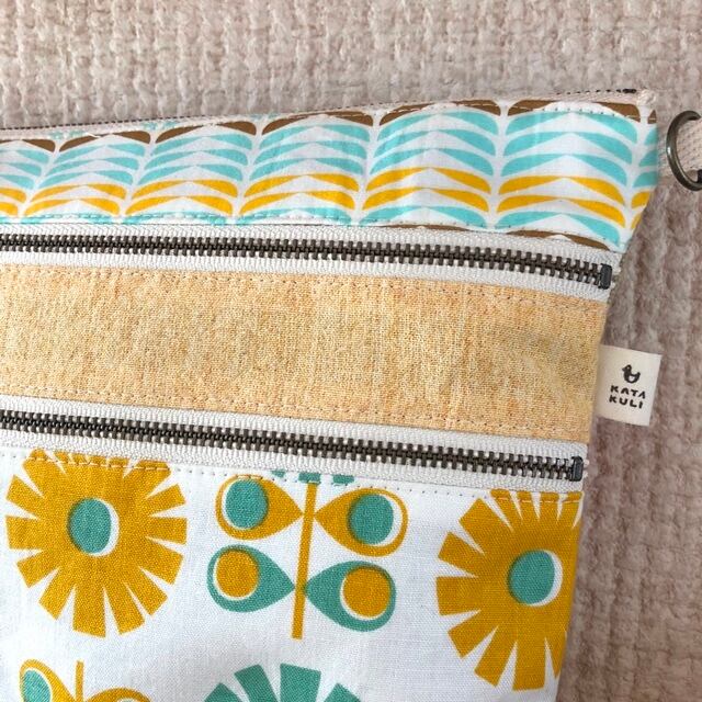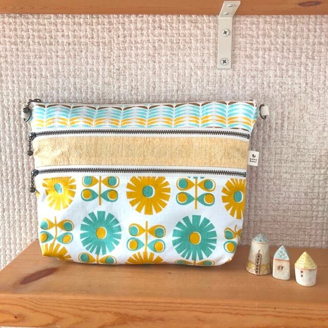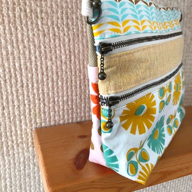 大きめな3ファスナーポーチ*ポシェットにも(フラワー)